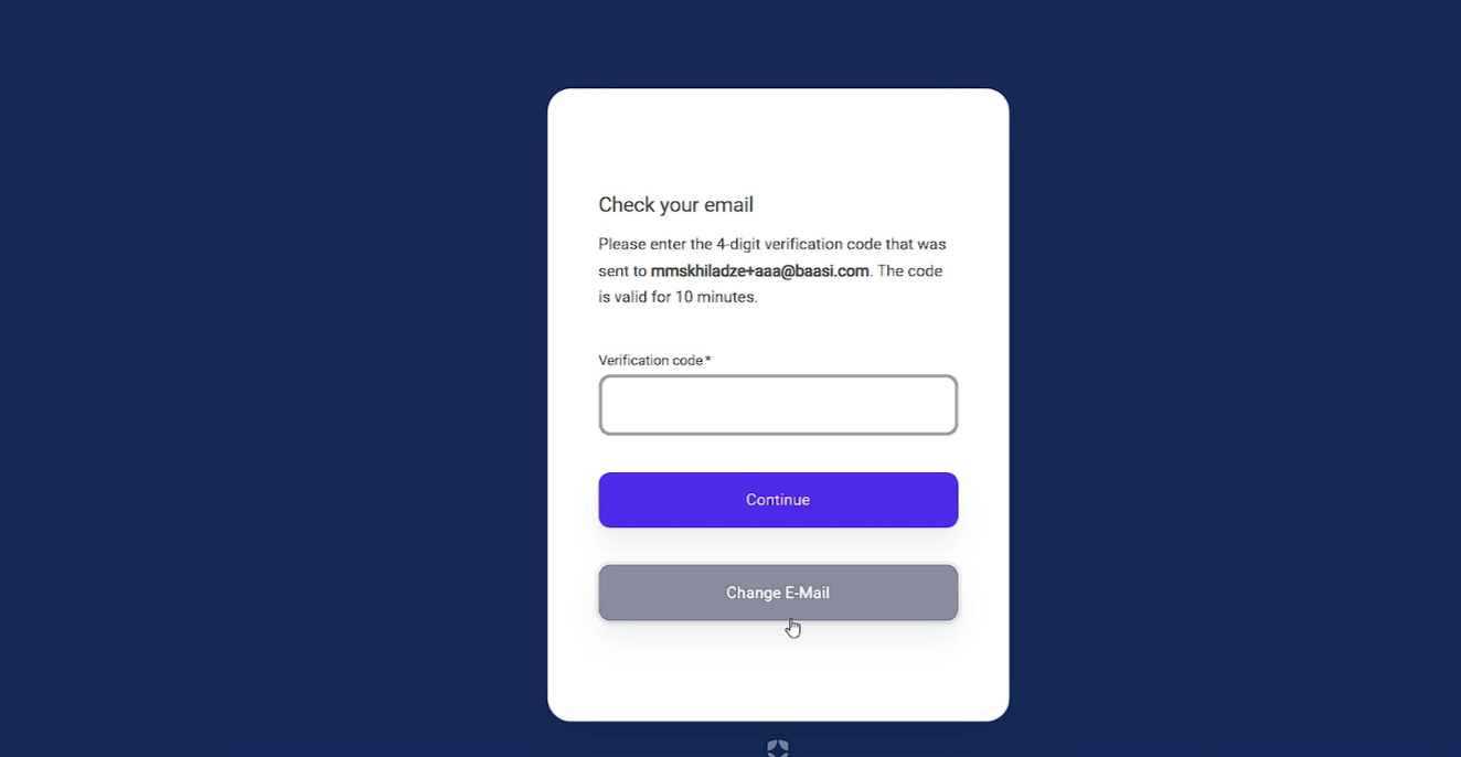 Enter the four-digit verification code sent to your email to confirm your email address ownership.